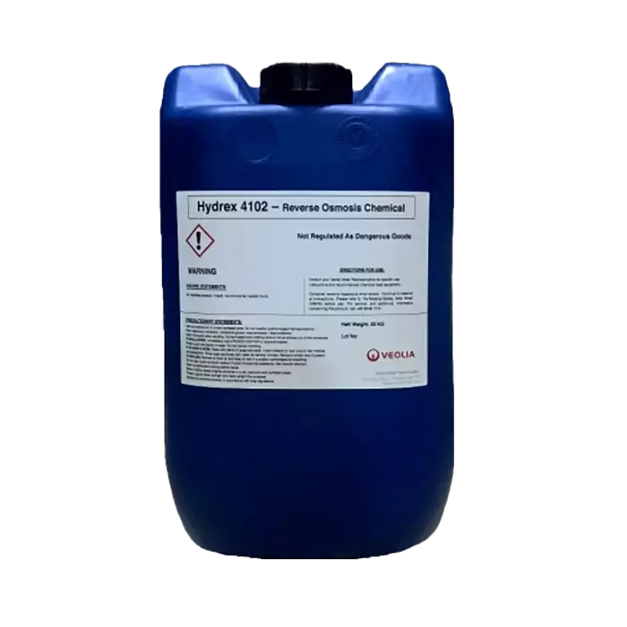 Hydrex 4102 là hóa chất chống cáu cặn (antiscalant) chuyên dùng cho các hệ thống RO công nghiệp và RO nước lợ, giúp ngăn ngừa hiện tượng đóng cặn vô cơ trên bề mặt màng RO. Sản phẩm được thiết kế để bảo vệ màng lọc, duy trì lưu lượng ổn định và kéo dài tuổi thọ hệ thống xử lý nước.